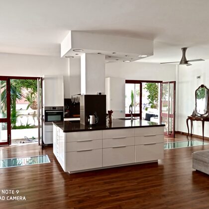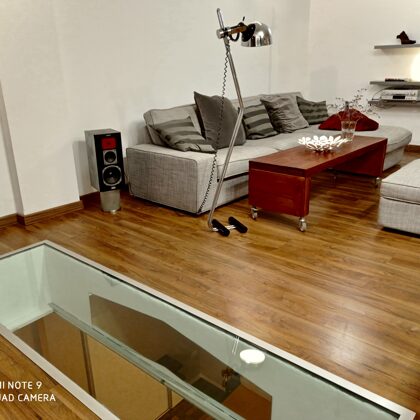 Top moderne Architektur. Die grosse Kücheninsel (2 x 3 Meter) bildet das Zentrum des oberen Loftraums. Im Boden sind grosse, begehbare Gläser verbaut, der Blick über 2 Etagen ist umwerfend (können im Handumdrehen mit Sichtblenden verschlossen werden). Wunderschönes Bad, sehr grosse Dusche. Eine schöne Treppe führt in die untere Etage (110 QM). Unten befindet sich ein verglastes Schlafzimmer und 2 weitere Schlafabteile. Ausserdem ein zweites Wohnzimmer mit TV-Ecke. Ein offenes und freies Lebensgefühl.